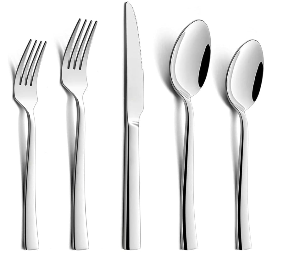 Set includes 1 dinner fork, 1 salad fork, 1 dinner spoon, 1 dessert spoon and 1 dinner knife.