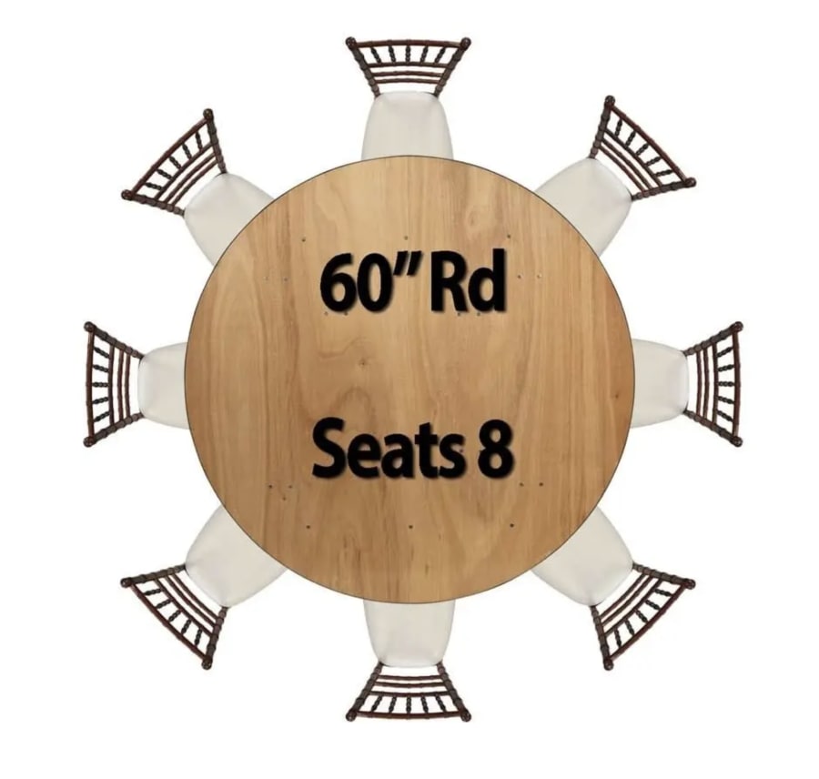 Whether you are planning a grand wedding reception or a cozy birthday celebration, this round wood folding table offers both style and practicality. Its elegant design adds a touch of sophistication to any setting, while its sturdy construction ensures stability for all your event needs. Seats up to 8 per table.