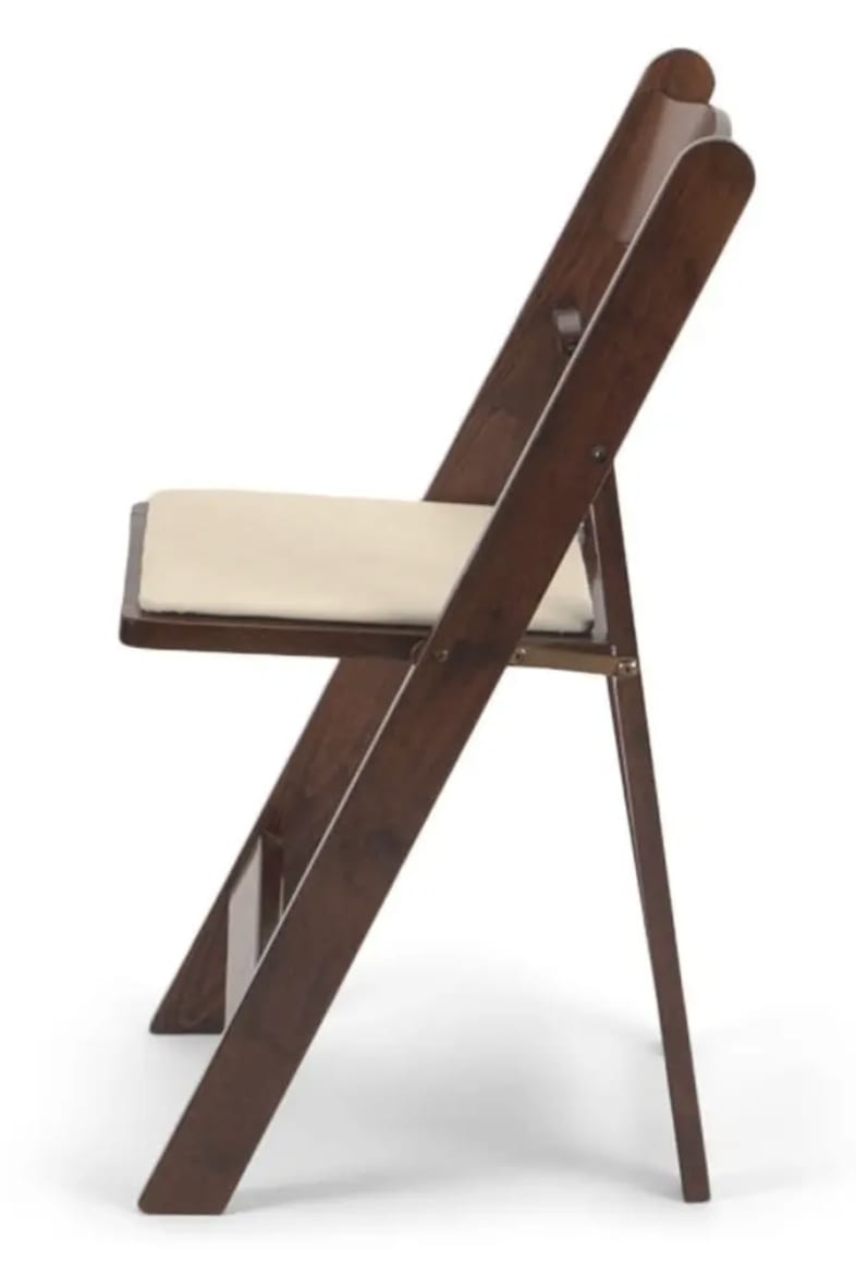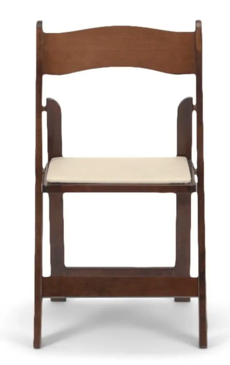 Fruitwood Wood Folding Chair With Ivory Pad -