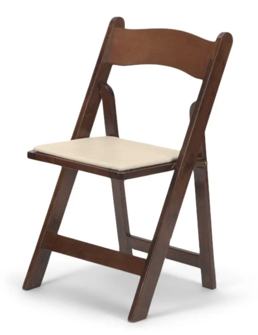 Make your event stand out with the exquisite Fruitwood Wood Folding Chair with Ivory Pad. Crafted from high-quality fruitwood, this folding chair exudes elegance and durability, perfect for both indoor and outdoor gatherings. The warm tones of the fruitwood bring a touch of nature to your event, adding a classic and timeless feel. These pair perfect with our fruitwood farm tables, book now!
