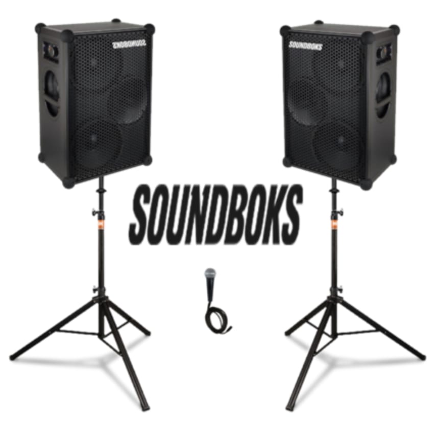 Our Soundbok premium sound system is great for weddings, parties, conferences, funerals or any type of special event! This speaker is bluetooth and can hook up directly to your phone. It also can run from a standard power outlet or off its own battery. Power source not needed, perfect for parks and venues. This system comes with the TWO speakers, TWO stands and TWO corded microphones. Book now!