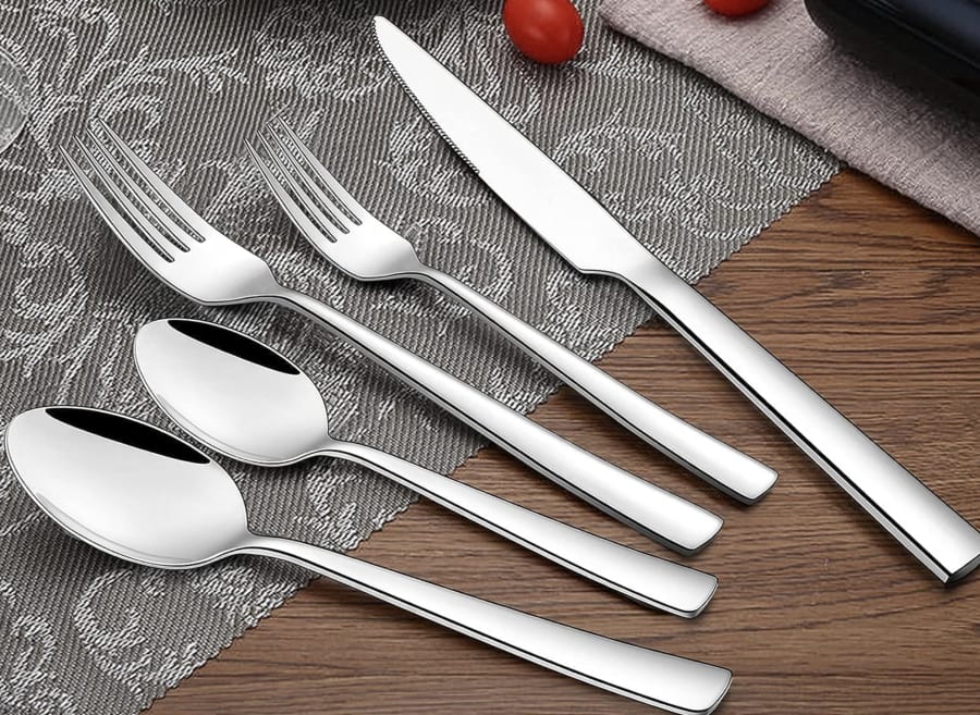 Set includes 1 dinner fork, 1 salad fork, 1 dinner spoon, 1 dessert spoon and 1 dinner knife.