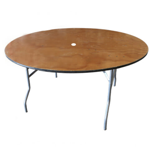 60' Round Wood Folding Table With Umbrella Hole -